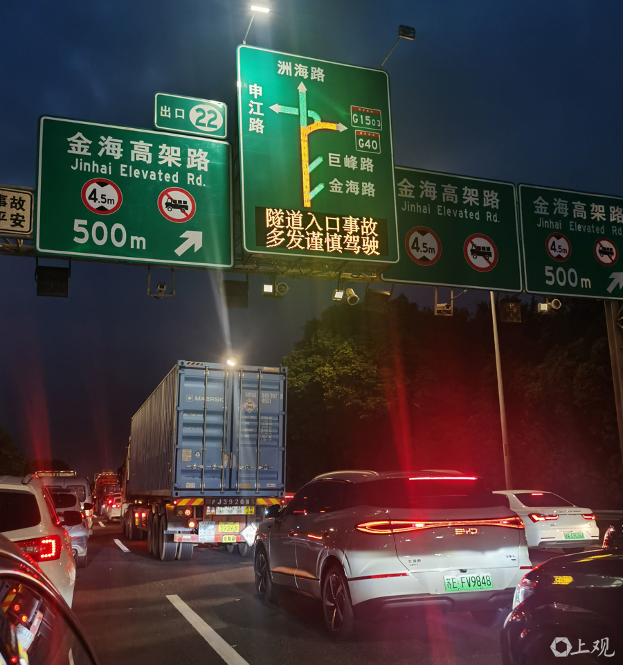2025年9月30日下午5时许,上海浦东外环线外圈往崇明方向出现严重交通拥堵,原本1小时的常规路程,通行时间延长至4小时。
